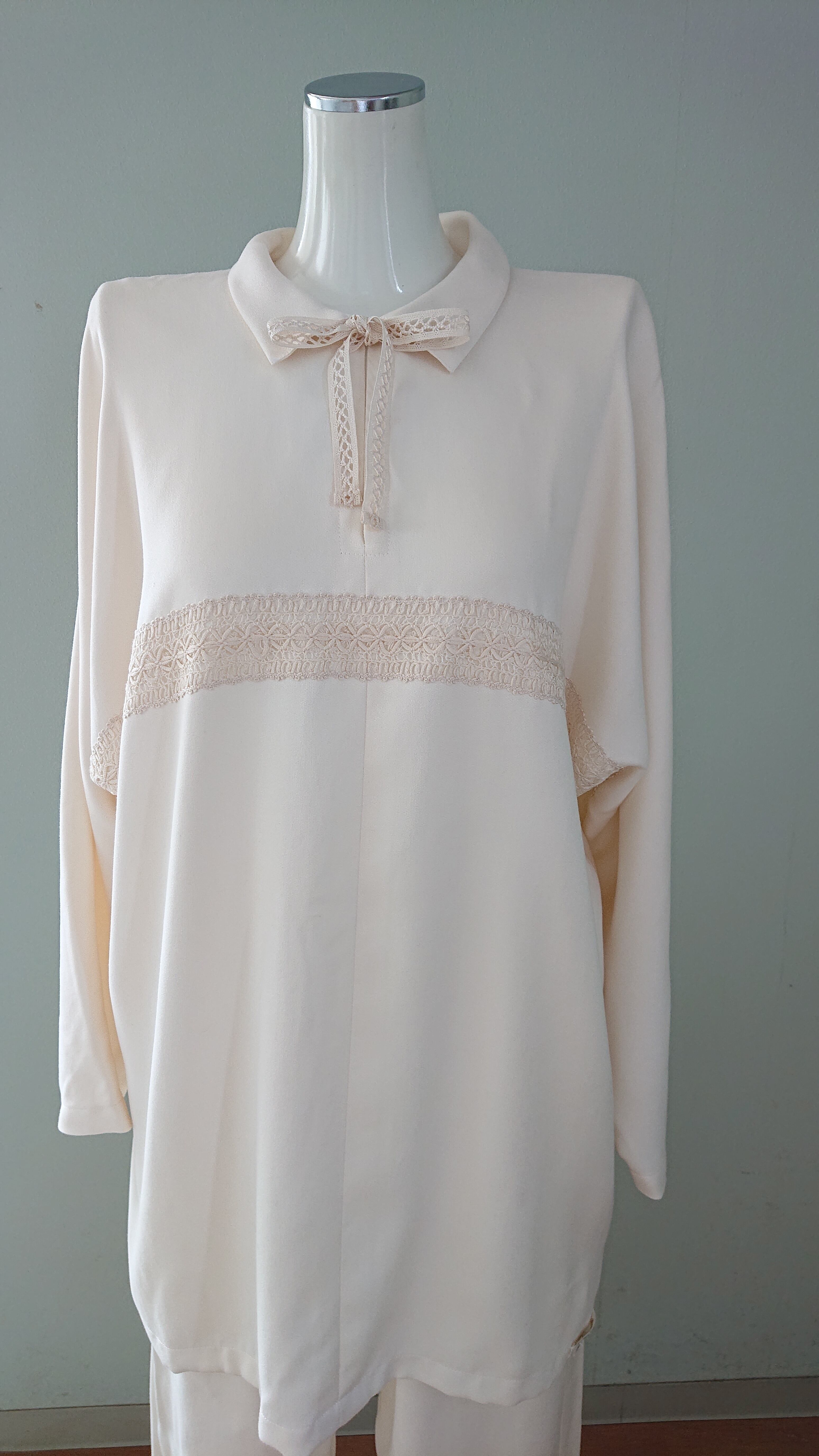 丹後で織り上げた絹100%のシルクパジャマは、贅沢な肌触りと上品なデザインが特徴です。柔らかなシルク素材が心地よく体にフィットし、快適な睡眠環境を提供します。襟付きのデザイン、シンプルながらもスタイリッシュで、リラックスした時間をより一層引き立てます。装飾のレースは自社絹糸で編んだオリジナルデザインです。お部屋着・ブラウスとしてもご活用頂けます。