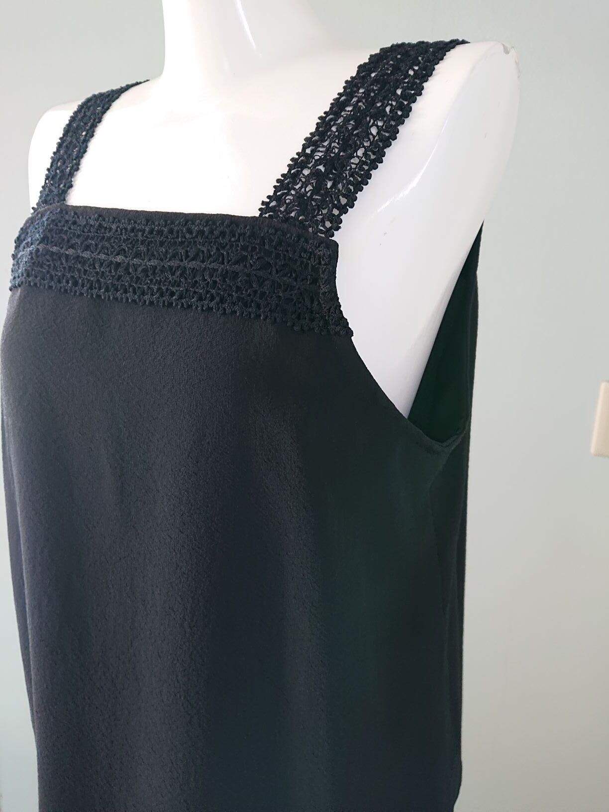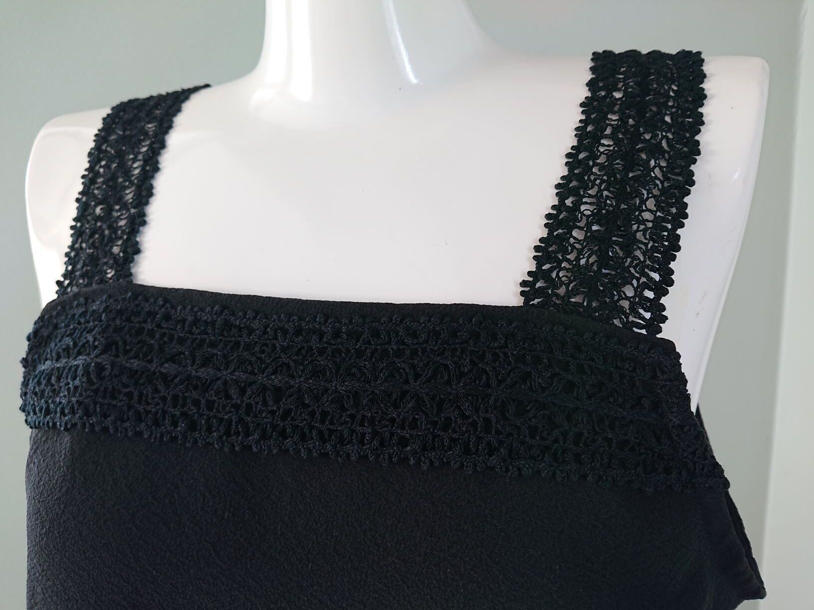 丹後ちりめん シルクキャミソール・ペチコート 黒 シルクレース付 ウォッシャブル