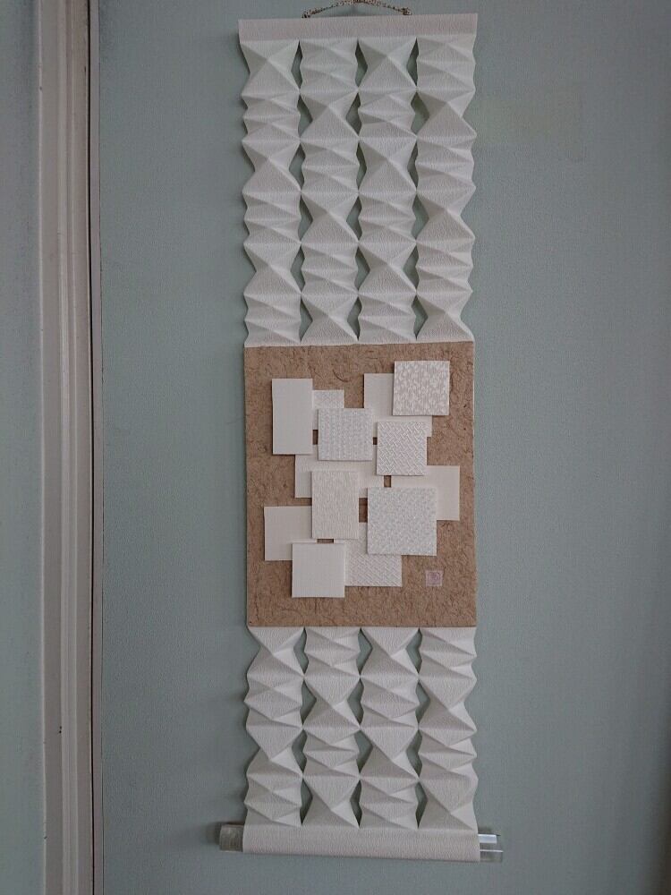 丹後ちりめんの新しいカタチ。伝統技法と山折り谷折り。和洋折衷どんなお部屋にも合うシルクのお軸です
